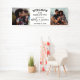 Bienvenue invités mariages à votre cérémonie ou réception avec une élégante bannière photo personnalisée 2. Les images et tout le texte sont simples à personnaliser. (CONSEIL EN MATIÈRE DE PLACEMENT D'IMAGE : Une façon simple de centrer une image exactement comme vous voulez est de la rogner avant de la télécharger sur le site Zazzle.) Le design moderne minimaliste noir et blanc comprend deux photos de votre choix, une calligraphie de script de style manuscrit chic, une typographie vintage inspirée de l'art déco, et un message personnalisable qui dit "bienvenue à notre bonheur toujours après." Ce panneau d'accueil mariage est une façon élégante de partager des photos de fiançailles tout en ajoutant une touche personnalisée à vos décorations de fête du jour. Félicitations à la mariée et au marié !