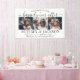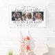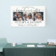 Bienvenue invités mariages à votre cérémonie ou réception avec une élégante bannière personnalisée 3 photo collage. Les images et tout le texte sont simples à personnaliser. (CONSEIL EN MATIÈRE DE PLACEMENT D'IMAGE : Une façon simple de centrer une photo exactement comment vous voulez est de la rogner avant de la télécharger sur le site Zazzle.) Le design moderne minimaliste noir et blanc comprend trois images de votre choix, une calligraphie de script de style manuscrit chic, une typographie vintage élégante, un coeur mignon en feuille d'or, et des messages personnalisables qui lisent "bienvenue à notre heureux toujours après" et "merci de célébrer avec nous." Ce panneau d'entrée mariage est une façon élégante de partager des photos de fiançailles tout en ajoutant une touche personnalisée à vos décorations de fête du jour. Félicitations à la mariée et au marié !