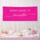 Créez votre propre bannière Happy Birthday personnalisée pour son anniversaire. Customisez le moderne mignon petit coeur swash manuscrit calligraphie signature style et taille de script selon les besoins. Augmentez la taille de la police pour les noms plus courts... réduisez la taille de la police pour les noms plus longs. Modifiez la couleur arrière - plan rose-chaud ou le texte blanc et déposez les couleurs de l'ombre pour qu'elles correspondent à ses couleurs préférées.