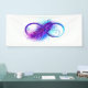 Symbole de l'infini avec une belle plume peinte en couleurs vives violettes et bleues sur fond blanc.