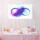 Infinity symbole with a beautiful feather painted in purple and blue bright colors on white background