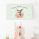 Banderole d'anniversaire avec une belle illustration représentant un cerf mignon. Entouré de roses roses et de fleurs roses.