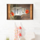 Bienvenue sur notre bannière mariage avec un thème rustique. Une photo d'une cruche de lait blanc et de quelques fleurs d'orange placées autour de la boîte de lait. Assis dans une grange sur un foin. Panneaux en bois dans l'arrière - plan.