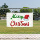 Bannière avec Joyeux Noël en texte vert et rouge 3D et casquette Père Noël. Disponible en plusieurs tailles pour intérieur et extérieur.