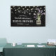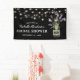 Bannière de douche nuptiale rustique avec un arrière - plan noir, lampes à cordes, bocal de maçon aux fleurs de lavande violette, enveloppé de burlap avec les initiales des couples et un modèle de douche nuptiale facilement personnalisable.
