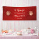 Cette bannière mariage chinoise présente des symboles de bonheur double or sur un arrière - plan rouge rubis chatoyant. Bienvenue texte dans un script manuscrit moderne. Il y a assez d'espace pour changer le texte de "au mariage de" en "à la cérémonie du thé de". De nombreux produits correspondants disponibles.