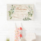 Moderne et tendance, cette bannière d'accueil mariage présente une géométrie en faux cuivre agrémentée d'une végétation d'eucalyptus à l'aquarelle sur une texture d'écorce de bouleau. Le texte est tout en cuivre correspondant. Copyright Invitations élégants. Tous droits réservés.