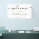 Cette chic carte de bannière de bienvenue mariage de script de signature noir et blanc peut être personnalisée avec vos noms et date spéciale. Conçu par Thisisnotme©