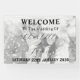 Cette bannière d'accueil mariage a une photo en noir et blanc classique du couple heureux de l'arrière - plan. Un script élégant et une police en gras recouvrent la photo. Pour modifier le texte et modifier la photo cliquez sur le bouton personnaliser.