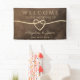 Coeur de corde or simple, élégant et sophistiqué en combinaison avec arrière - plan en bois rustique. Adorable, moderne, contemporain, unique Tying The Knot - Mariage Welcome bannière.