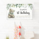 Banderole d'anniversaire feuille en vert d'ours en peluche boho d'âge mignon. Customisez-le avec votre nom et votre texte.