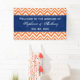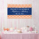 Motif de chevron orange avec accent bleu roi. Motif de zigzag orange et blanc. Bannière de bienvenue mariage.