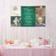 Célébrez un joyeux anniversaire d'étape avec une bannière personnalisée 4 photo vert et or fête. (CONSEIL EN MATIÈRE DE PLACEMENT D'IMAGE : Une façon simple de centrer une photo exactement comment vous voulez est de la rogner avant de la télécharger sur le site Zazzle.) Design comprend quatre images de votre choix, la calligraphie script moderne éditable "Cheers to 50 Years" et des points de confetti en fausse feuille d'or sur un arrière - plan en acier inoxydable faux brossé. Veuillez noter que l'or est imprimé en couleur et non en métal. Le modèle est simple à customiser pour n'importe quel âge ou occasion, comme une retraite. Cette signature de fête est une façon élégante de partager des photos de votre choix tout en ajoutant une touche de finition personnalisée à une célébration spéciale du cinquantième (ou autre année). S'il n'y a pas de texte non désiré, il suffit de le supprimer.