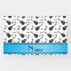 Les silhouettes de guitares et les notes noires blanches nommées faites sur commande modernes et à la mode de musique modèlent l'arrière - plan et avec la rayure bleue personnalisée avec juste ajoutez vos cadeaux nommés ou cadeaux de monogramme ou vos initiales pour un cadeau unique. Idées de cadeau de guitare pour les hommes et garçons et filles. Idéal pour des musiciens et des joueurs de guitare.