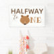 Une bannière de demi-anniversaire pour votre bébé. Célébrez les six premiers mois de votre bébé avec cette jolie bannière. Il a un jeu de couleurs blanc et marron avec le mot "One" incluant une illustration du visage d'ours comme première lettre du mot. Ajoutez simplement cette bannière à votre panier et joyeux demi-anniversaire à votre merveilleux bébé ! Bear Halway to One Bannière Conception de jour férié | ©Melissa Patton - Artiste/Illustrateur