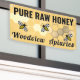 sur cette bannière extérieure est conçue pour attirer l'attention sur votre produit dans un panneau audacieux qui est facile à placer sur, devant, derrière ou au-dessus de votre table du marché des agriculteurs. Tons dorés de rayon de miel et une abeille stylisée avec votre description de produit en gras : c'est-à-dire, MIEL BRUT PUR ou MIEL LOCAL