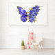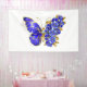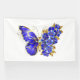 Bijoux, bleu, saphir, papillon aux fleurs pétillantes avec aile décorée de bleu, fleurs précieuses avec feuilles d'or sur arrière - plan blanc.