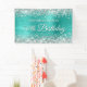 Parties scintillant argent Faux et feuille de style métal brossé turquoise 50e Anniversaire bannière d'accueil avec la police blanche avec un look d'ombre turquoise foncé pour correspondre à un invitation ici dans cette collection. Une calligraphie moderne et élégante avec une police moderne de style casquette peut être customisée. Créez votre propre signe de bienvenue pour fêter votre anniversaire. L'arrière - plan présente une parties scintillant étincelante et des graphismes d'art numérique en feuille métallique qui s'impriment comme une photo.