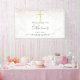 Doté d'une élégante parties scintillant rose en or et d'un simple crucifix en or, cette bannière chic de première sainte communion peut être personnalisée avec vos informations spéciales d'événement. Conçu par Thisisnotme©