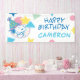 Découvrez cette amusante bannière d'anniversaire Snoopy. Personnalisez avec le nom de la fille ou du garçon d'anniversaire !