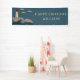 Ajoutez une touche balnéaire aux fêtes d'anniversaire et autres événements spéciaux avec cette bannière de fête personnalisée. Il a une simple illustration nautique d'un phare en rouge, crème ou ivoire. Le phare se dresse sur une côte rocheuse avec des vagues qui s'écrasent en contrebas et des nuages crème dans le ciel. Le graphique est positionné contre un arrière - plan bleu français doux.