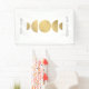 Notre design original d'inspiration du milieu du siècle, aux élégantes formes géométriques dorées ressemblant aux phases abstraites de la lune, crée un design captivant sur cette bannière personnalisée. Cette bannière propose du texte personnalisable au-dessus et au-dessous du motif doré fascinant, vous permettant de l'adapter à vos besoins spécifiques. Idéal pour les salons professionnels, les kiosques événementiels, les promotions en magasin, les pop-up, etc., cette bannière est le moyen idéal pour faire une déclaration lors d'un rassemblement. Le design intemporel de formes géométriques dorées est non seulement saisissant visuellement mais aussi incroyablement polyvalent, ce qui en fait un excellent choix pour une variété d'entreprises et d'entreprises créatives. Que ce soit pour une boutique, un studio de design de bijoux, un centre de yoga ou toute autre entreprise créative, cette bannière en vinyle vous permettra de vous démarquer et de laisser une impression durable. Améliorez votre présence de marque avec cette étonnante bannière accrocheuse qui incarne l'essence du design du milieu du siècle et de la personnalisation moderne. Design © 1201AM Design Studio | www.1201am.com