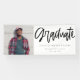 Bannière moderne et simple de la fête de remise des diplômes avec script écrit à la main qui dit "Graduate" à côté de votre photo. Vous pouvez ajouter le nom, l'école et l'année du diplômé.