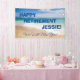 Bonne retraite ou bannière d'occasion avec un bel arrière - plan de plage avec des vagues qui roulent sur le sable. Tout le texte est modifiable.