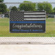 Félicitation ! Ajoutez la touche finale à votre diplôme de police avec ces bannières de fin d'études de police de ligne bleue mince et fournitures de fête. Drapeau américain design en couleurs Police Drapeau, design vintage en détresse sur cuir noir gris. Cette collection de félicitations à l'officier de police sera un favori. Personnalisez-vous avec le nom des officiers, et les félicitations peuvent être changées pour une retraite heureuse pour le parti de la retraite de la police, ou pour le parti de graduation de l'académie de police. Consultez notre mince collection de lignes bleues pour les invitations à la remise des diplômes de police, les cadeaux de la police, les faveurs de la fête et les fournitures. DROIT D'AUTEUR © 2020 Judy Burrows, Black Dog Art - Tous droits réservés. Bannière de la Police Mince Ligne Bleue Personnaliser la Graduation Party