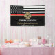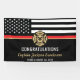 Cette conception comprend un drapeau de pompier avec des rayures noires et blanches, ainsi qu'une fine bande rouge. "Félicitations" et l'insigne d'un pompier se trouve au-dessus du nom du pompier, lieutenant ou chef qui est diplômé ou qui prend sa retraite. Fêtez dans le style !