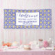 Moderne, élégant, carrelage portugais, bleu et blanc, espagnol, Italie, méditerranéen, Mariage d'été Bannière d'accueil. Parfait pour les jeunes mariés. Vous pouvez le personnaliser avec le nom et la date de la mariée et du marié.
