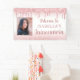 Célébrez une Quinceanera pour une fille qui aime étinceler avec un glam rose d'or girly et parties scintillant rose goutte bannière d'accueil personnalisée avec sa photo et son nom accentué avec éclat extra. CONSEIL PHOTO : Pour obtenir les meilleurs résultats, choisissez une photo avec le sujet au milieu et/ou pré-rognez-la dans une forme similaire à celle montrée AVANT de télécharger. Contactez le concepteur via Zazzle Conversation ou makeitaboutyoustore@gmail.com si vous souhaitez modifier ce design sur un autre produit ou si vous souhaitez coordonner des éléments.