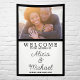 Une banderole verticale d'accueil avec une photo du futur Monsieur et Madame dans une bordure noire audacieuse. Tourbillonnant script ajoute la touche finale à ce signe d'accueil mariage. Pour modifier le texte et modifier la photo cliquez sur le bouton personnaliser.