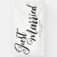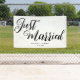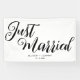 La bannière moderne de réception de mariage juste marié est une bannière de fête de mariage en noir et blanc pour votre mariage. Cette élégante conception "Just Married" fait un ajout amusant à la voiture de escapade du couple. Un équipement de mariage parfait pour la décoration mariage avec tulipes à fleurs et verres à champagne. Customisez avec le nom de la mariée et du marié et la date du mariage de la fête de mariage.