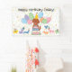 Faites de votre Goldendoodle un anniversaire spécial grâce à notre design adorable sur le thème du chien avec un casquette de fête et des ballons colorés. Personnalisez cette bannière de fête d'anniversaire amusante avec le nom de votre chien pour une fête de queue !