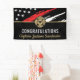 Cette conception comprend un drapeau de pompier avec des rayures noires et blanches, ainsi qu'une fine bande rouge. "Félicitations" et l'insigne d'un pompier se trouve au-dessus du nom du pompier, lieutenant ou chef qui est diplômé ou qui prend sa retraite. Fêtez dans le style !