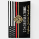 Cette conception comprend un drapeau de pompier avec des rayures noires et blanches, ainsi qu'une fine bande rouge. "Félicitations" et l'insigne d'un pompier se trouve au-dessus du nom du pompier, lieutenant ou chef qui est diplômé ou qui prend sa retraite. Fêtez dans le style !