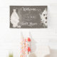 Un design boho amusant a un charme rustique, mais beau. Fabriquée à l'ombre luxueuse d'un taupe profond, cette bannière de douche dégage une sensation de suède doux. Une robe mariage tout simplement magnifique est accrochée à un cintre avec une paire de bottes de cowboy qui s'émerveille en dessous. Quelques anémones, magnolias et eucalyptus sont astucieusement arrangés pour lui donner un peu de flair. La beauté décontractée est une excellente façon de la décrire. Un choix parfait pour ce mariage de jardin ou de grange ! Customisez simplement le nom et vous êtes tous définis. Chic Boho ! C'est vraiment un genre.