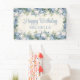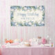 Bannière de la soirée "Happy Birthday" féminine aux couleurs bleu et blanc poussiéreux et élégant. Texte, "Happy Birthday" est écrit dans une belle police manuscrite. Personnalisé avec le nom de l'invité d'honneur. Contactez-moi pour obtenir de l'aide sur vos personnalisations ou pour demander des produits Zazzle correspondants ou coordonnés supplémentaires pour votre groupe.