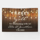 Bannière à thème rustique avec une série de lumières dressées contre un arrière - plan en bois de grange. Ajoutez votre texte personnalisé pour personnaliser. Idéal pour une grange rustique mariage ou extérieur décontracté mariage sud. Ou n'importe quel événement de type grange.