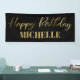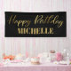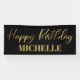 Banderole moderne et élégante en noir et or "Joyeux anniversaire" customisée du nom de l'invité d'honneur.