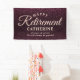 Modern Happy Retirement Nom personnalisé Bannière avec parties scintillant rose festive brillamment confetti Illustrations. Personnalisez avec votre nom et 1 ou 2 lignes de texte personnalisé. C'est le rose sur la version noire.