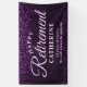 Modern Happy Retirement Nom personnalisé Bannière avec parties scintillant violette festive et brillant confetti Illustrations. Personnalisez avec votre nom et 1 ou 2 lignes de texte personnalisé. C'est le violet lilas en version noire.