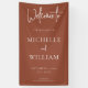 Créez votre propre bannière d'accueil mariage personnalisée avec une typographie de script de calligraphie élégante et un design en terre cuite minimaliste moderne.