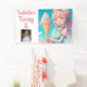 Ajoutez l'âge et la photo de votre fille à cette bannière d'anniversaire. Belle Anime fille aux couleurs pastel tenant un cône de crème glacée pour une soirée d'anniversaire sur le thème de la crème glacée. Les couleurs utilisées sont le rose, le turquoise, l'orange, le bleu, le violet et le bleu. Enfants mignons et colorés Ai art. génatviecontent