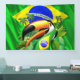 Le Toco Toucan brésilien sur la jungle tropicale, portant une écharpe aux couleurs du drapeau brésilien. Pour les amoureux du Brésil et pour les supporters de la Coupe du Monde de Football / Football !