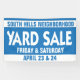 Bannière de vente personnalisée de quartier ou de jardin communautaire en bleu et blanc. Modifiez le nom de votre communauté et les dates pour annoncer les ventes de votre cour de quartier avec une bannière qui attire l'attention.
