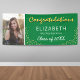 Célébrez la remise des diplômes avec style grâce à notre bannière de fête de graduation personnalisée! La bannière est ornée d'une toile de fond colorée personnalisable, d'une photo cinglante du diplômé, agrémentée d'une couche pétillante de parties scintillant. Avec le mot 'félicitations' écrit dans un script de l'ombre, avec le nom du diplômé, l'école et l'année de classe, cette bannière est la pièce maîtresse parfaite de toute célébration. Changez l'arrière - plan de vert vif à n'importe quelle couleur qui correspond à votre thème pour une touche vraiment personnalisée !