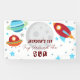 Thème d'anniversaire de l'espace pour les enfants. Facile à personnaliser. Aussi disponible en tant qu'invitation à télécharger en ligne! Printemps, fêtes estivales vaisseau spatial, planètes, lune, étoiles, vaisseau spatial alien, police de script amusant