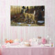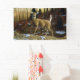 Un chien blanc est surpris par votre présence. Les feuilles d'automne et un léger dépoussiérage de neige indiquent qu'il est à la fin de l'automne dans la forêt. OEuvre d'art réaliste créée à partir d'une peinture à l'huile originale de l'équine et de l'artiste faunique Crista S. Forest.